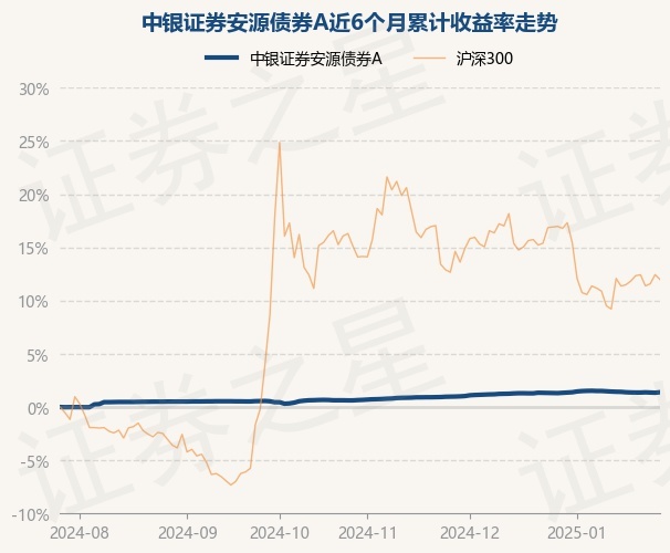 本站消息,1月27日,中银证券安源债券A最新单位净值为1.1015元,累计净值为1.1694元,较前一交易日上涨0.05%。历史数据显示该基金近1个月上涨0.05%,近3个月上涨0.75%,近6个月上涨1.39%,近1年上涨4.58%。该基金近6个月的累计收益率走势如下图: